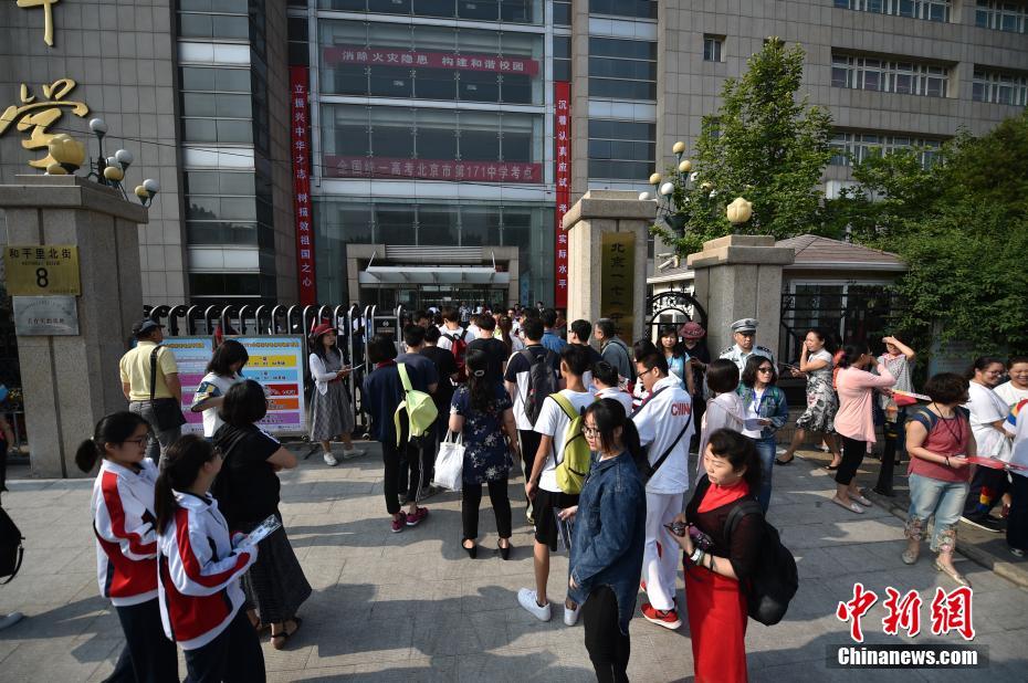 6月7日,2017年高考大幕正式拉開,全國將有940萬考生參加考試。今年可謂是高考歷史上的特殊年份,一方面,今年是高考恢復(fù)40周年,另一方面,今年也被稱為“新高考元年”,高考綜合改革試點地區(qū)的考生將迎來首次“新高考”。圖為北京市171中學(xué)考點的考生陸續(xù)進入考場。中新網(wǎng)記者 金碩 攝