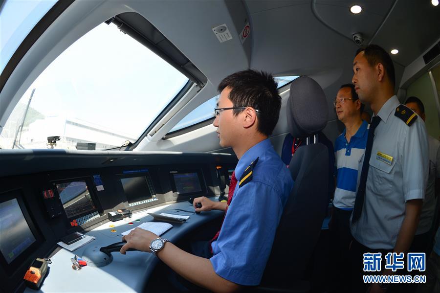 技術人員在寶蘭高鐵高速綜合檢測列車司機室作業(5月16日攝)。