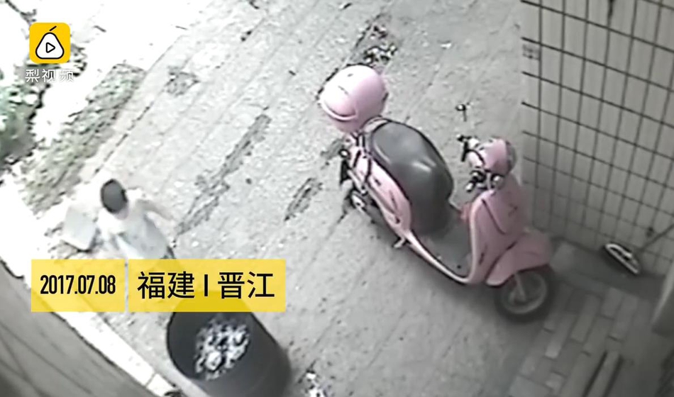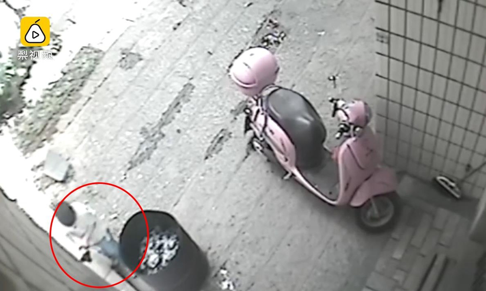 7月8日,福建晉江。當地農歷六月十五舉行敬天公的習俗,家家戶戶都會燒香祈求平安。一男童被拍抓起一只小狗,扔進了燒紙錢的鐵桶。小狗被活生生烤死。圖文:梨視頻