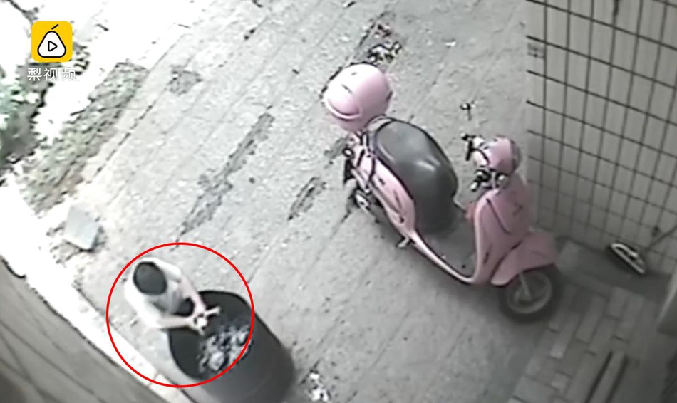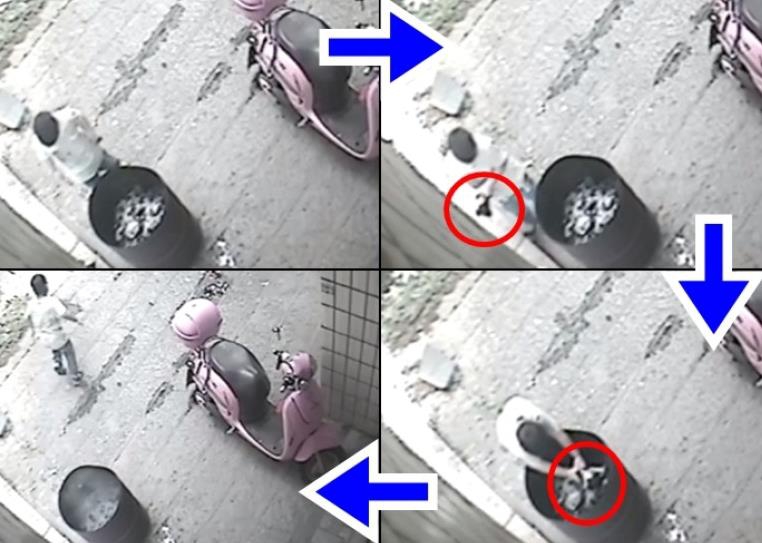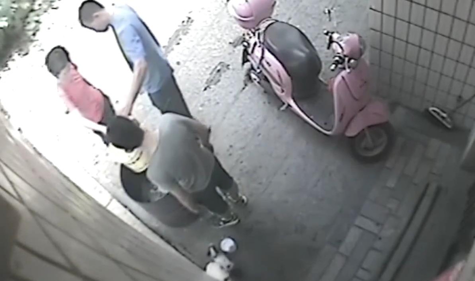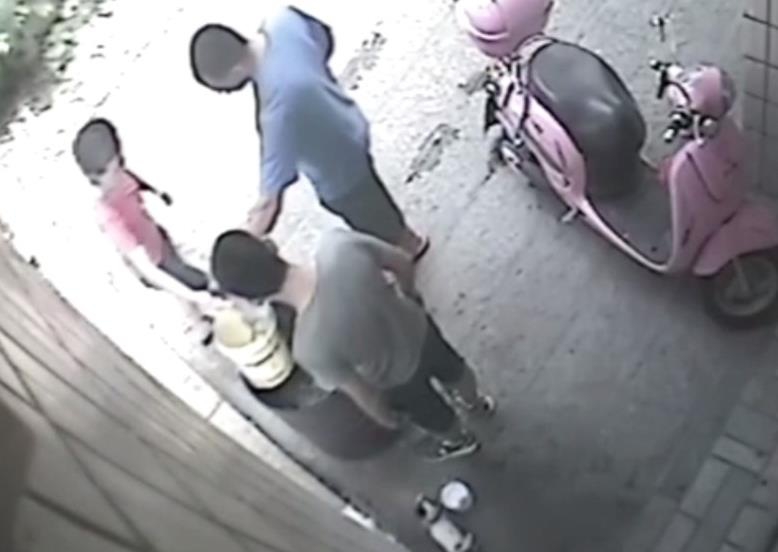 “然后我們以為那個小狗,那個桶那么高,它怎么能跳進去。然后我們就調監控,發現是鄰居家小孩做的?!眻D為男童抓起小狗將其扔進火盆。