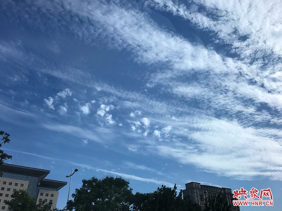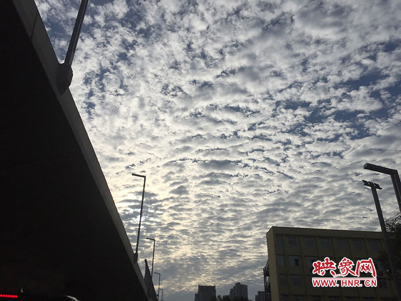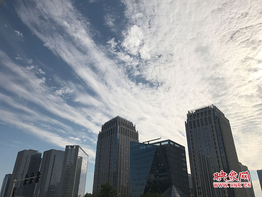 立秋大雨過后,8月8日清晨時分,鄭州上空出現美麗的魚鱗云,讓人沉醉,讓人興奮。抬頭45度,仰望天空,鬧市與清澈只有一顆心的距離……