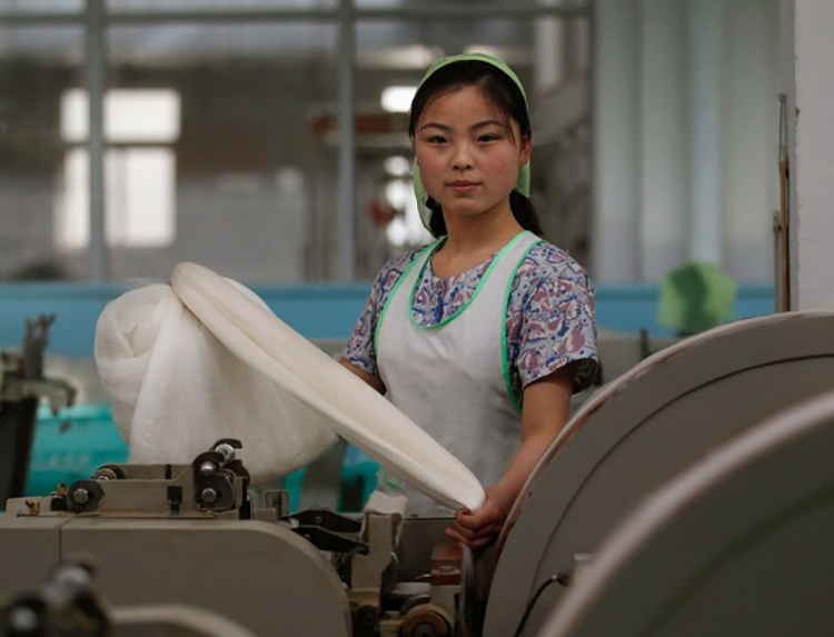 平壤紡織廠女工,這個工廠是以金日成妻子的名字命名的。