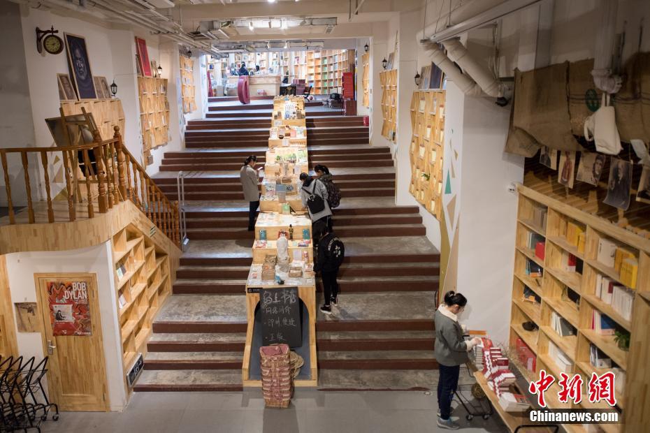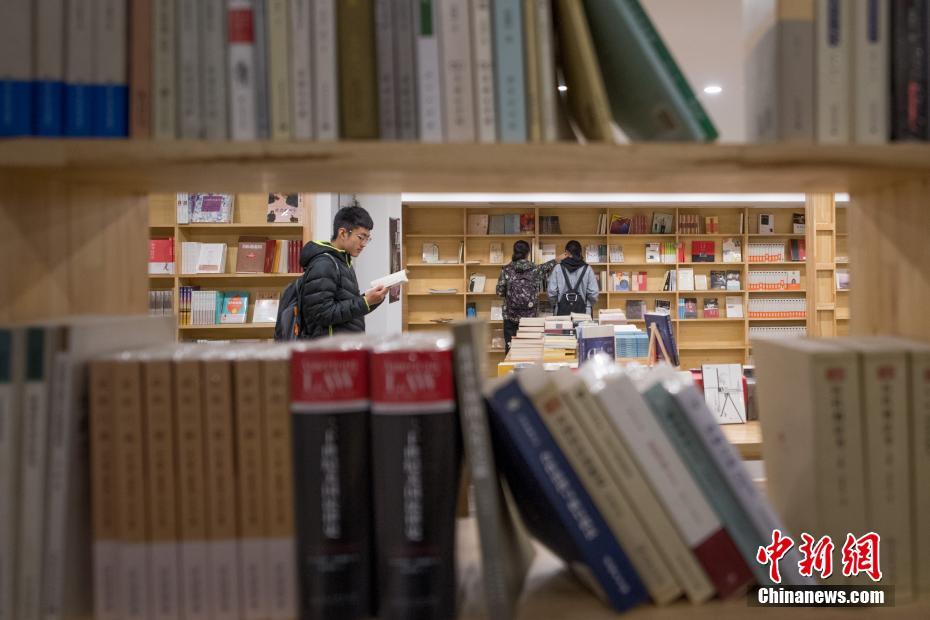 10月23日,山西太原,讀者在島上書店內閱讀各類圖書。該書店是由2016年從山西大學畢業的盧虹任創立,通過在校園內眾籌的200萬元人民幣,將一座地下車庫改建成24小時書店,為讀者提供優雅閱讀環境的同時,也圓了自己學生時代的“書店夢”。 武俊杰 攝