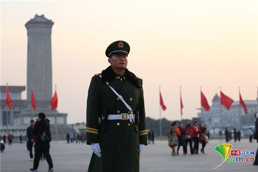 2.   11月19日下午,武警官兵在天安門廣場執勤。中國青年網通訊員 李超 攝