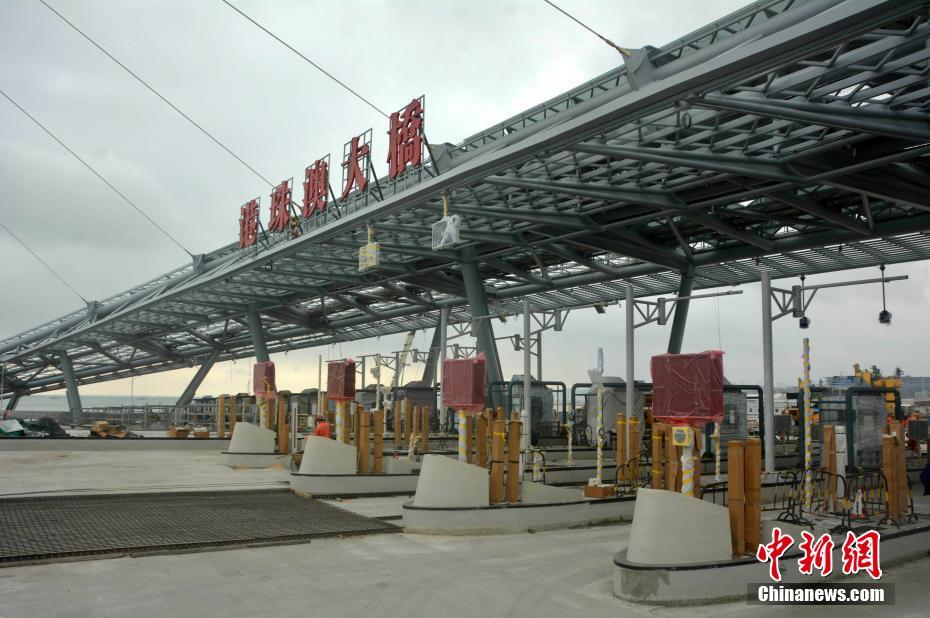 11月30日,記者在港珠澳大橋珠海公路口岸看到,口岸的聯檢部門正在積極地為大橋開通做準備,目前各項收尾工作正在有條不紊地推進中。曾被英國《衛報》稱為“現代世界七大奇跡”之一的港珠澳大橋是連接香港、珠海、澳門的超大型跨海通道。它集橋、島、隧道于一體,全長55公里,是迄今世界上總體跨度最長、鋼結構橋體最長、橋面鋪裝面積最大的跨海大橋。 中新社記者 鄧媛雯 攝