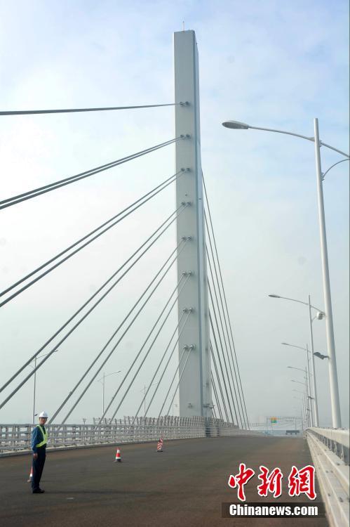 11月30日,港珠澳大橋橋面鋪裝工程已經完成,其他收尾工作仍在進行中,為大橋具備年底通車條件做準備。據了解,港珠澳大橋主體工程近23公里的橋梁,首次在橋梁工程上部結構大規模采用鋼結構,用鋼量達40多萬噸,足以建造60座埃菲爾鐵塔。 中新社記者 鄧媛雯 攝