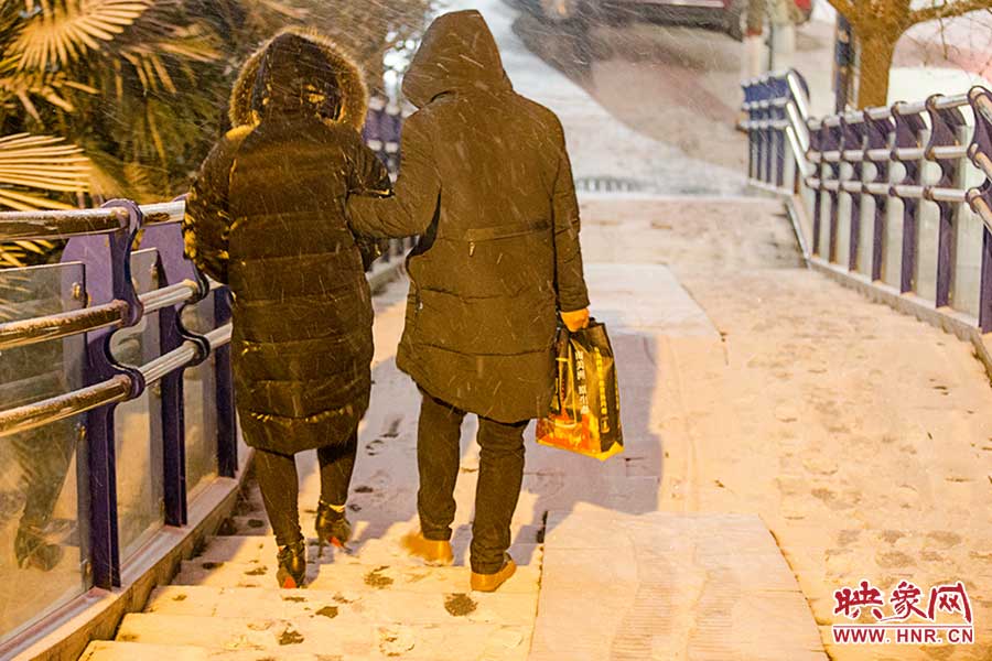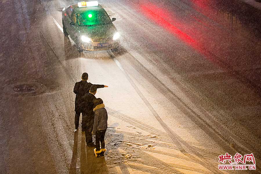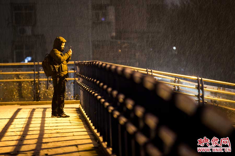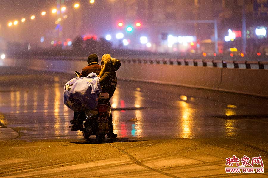 一位跑腿師傅剛從四環(huán)送貨回來,眉毛上都落上了雪花