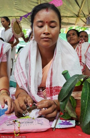 儀式由抓住來自不同村莊的一雌一雄兩只青蛙開始。達斯說:“我們必須確保青蛙來自兩個不同的村莊,只有這樣,雨神才能接受我們的呼吁。等到青蛙準備就緒了,整個婚禮的儀式就像我們人類自己的婚禮儀式一樣。”