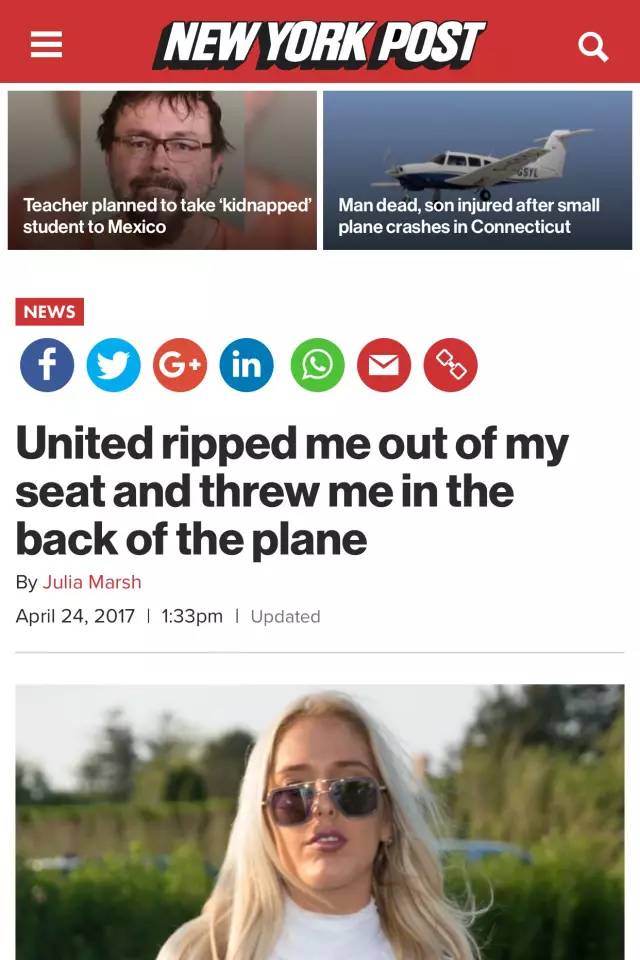 當然,以上都是名媛方單方面的說法,但美聯航就這件事回答記者說,因為案件正在審理中,不做任何回應,所以事實真相現在也無法確定。