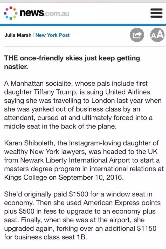 于是在“遭受委屈”之后,這位名媛選擇起訴美聯航。。