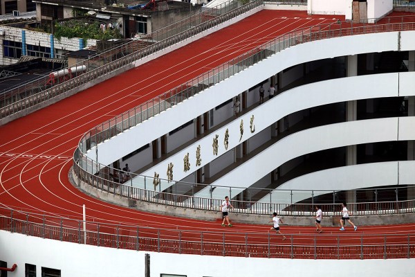 9月1日,浙江省天臺縣赤城街道第二小學的房頂200米環(huán)形跑道正式啟用,該跑道能滿足36個班級1600到1800名學生的正常教學活動。在樓頂建跑道,這一做法在中國尚屬首例。該設計方案代表中國參加了“第14屆威尼斯國際建筑雙年展”。