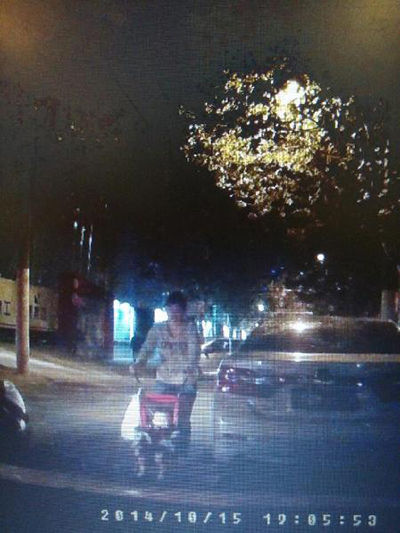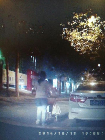 當晚7點左右,童先生在市一醫院門口停車等待妻兒,一名推著童車的婦女的舉動引起童先生注意。
