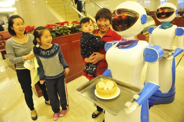 為什么會想到開一家機器人餐廳?盧迪鈳說,他原先是做電子商務(wù)的,因為做得不好,他一直想轉(zhuǎn)行。一次上網(wǎng)時,他看到昆山開了一家機器人餐廳,反響非常好。于是他去昆山進行了考察。這次考察讓他下了決心,在家人的支持下,他開了這家機器人餐廳。盧迪鈳告訴記者,他們餐廳里的機器人會說40句基本用語,如“你的菜到了,請慢用”等。他想下次編程的時候加入寧波話,讓機器人更親切。