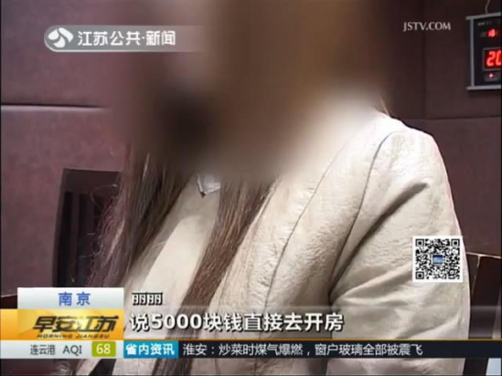 女子自稱叫麗麗,山東人,最近來南京旅游。無聊時在陌陌上認識了一名男子,男子稱5000元直接去開房,麗麗答應了。