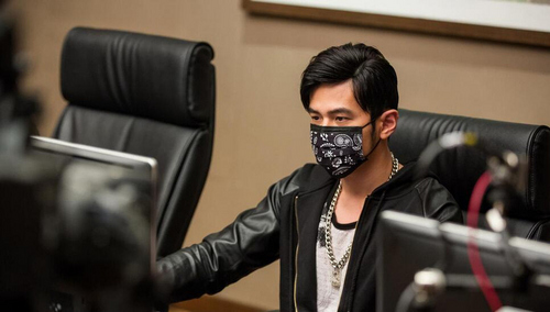 周董戴口罩打游戲。