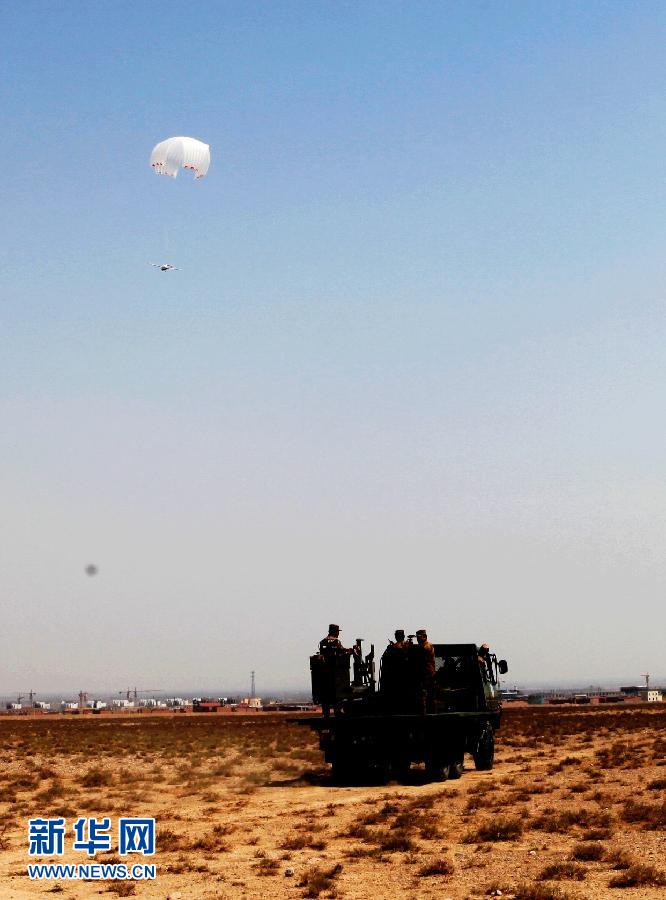某型測繪無人機返回地面時,自動打開降落傘,空降到指定地域(4月16日攝)。新華社發(黃寶峰 攝)