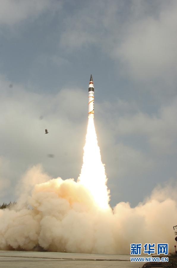 印度當地時間19日8時7分(北京時間10時37分)從東部惠勒島試射了自主研制的、射程超過5000公里并可攜帶多枚核彈頭的烈火-5型中程彈道導彈。