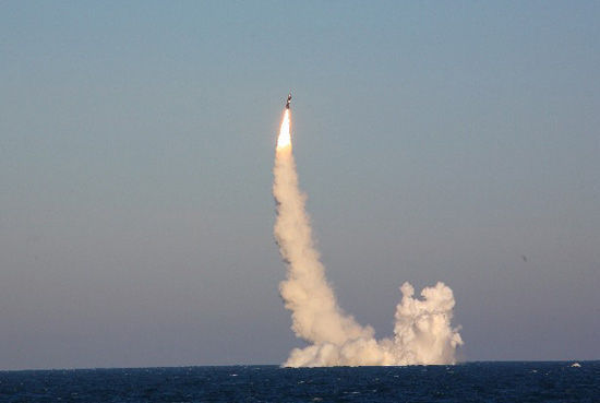 資料圖:俄軍核潛艇試射“布拉瓦”潛射型戰略導彈