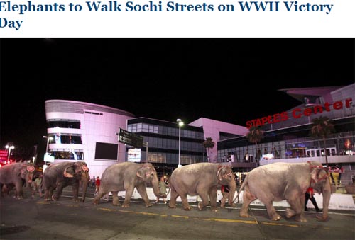 據俄新社報道,俄羅斯國家馬戲公司日前透露,為了慶祝衛國戰爭勝利67周年,來自俄羅斯一著名馬戲團的象群將于5月6日在索契的大街上巡游。