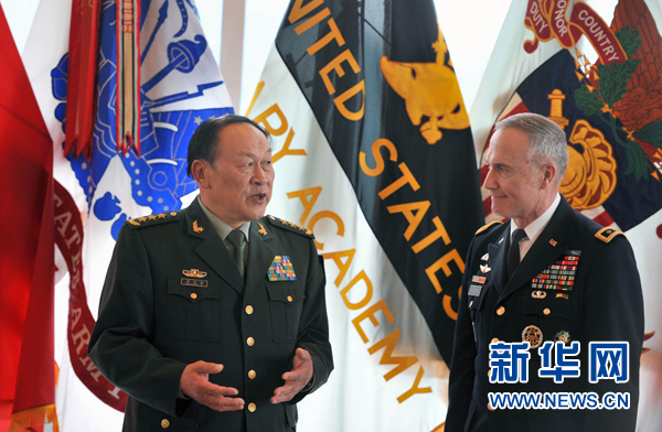 在西點軍校圖書館舉行的贈書儀式上,梁光烈表示,此次訪美非常成功,非常順利,達到了預期的目的。他說,通過訪問,推動了胡錦濤主席和奧巴馬總統關于發展兩國兩軍關系達成的共識,增進了了解,加強了互信,推動了合作,也見證了美國國防和軍隊建設取得的成就,為我們提供了很好的學習機會。