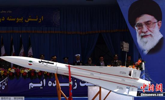 當地時間2012年4月17日,伊朗舉行大型軍隊閱兵式慶祝建軍節。圖為伊朗Sejil導彈(泥石-2)開過檢閱臺。