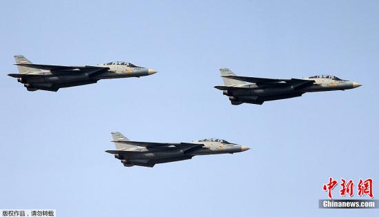 當地時間2012年4月17日,伊朗舉行大型軍隊閱兵式慶祝建軍節。圖為伊朗空軍F-14戰機飛過檢閱臺。