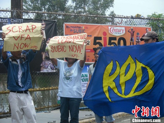 菲律賓民間團體16日舉行活動,抗議美軍核潛艇??刻K比克灣。菲官方當天則強調,美軍核潛艇只是“例行??俊?,美方早在4月3日就已向菲方提出請求。