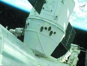 格林尼治時間16時,“龍”飛船成功與空間站“和諧”號節點艙對接。