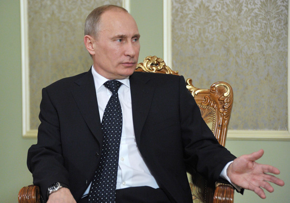 2012年5月31日,在白俄羅斯首都明斯克,到訪的俄羅斯總統(tǒng)普京與白俄羅斯總統(tǒng)盧卡申科(不在畫面中)會(huì)談。當(dāng)日,新任俄羅斯總統(tǒng)普京抵達(dá)白俄羅斯,開始為期2天的正式訪問(wèn)。這是普京上任以來(lái)的首次出訪。圖片:新華社/法新