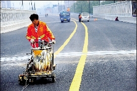 一些路段正在進行道路標線施工和照明安裝,市燈飾照明處工作人員告訴記者:“正在安裝的是400W的高壓鈉燈?!?/p>