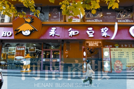 鄭州富田太陽城小區內的永和豆漿店是河南唯一一家獲得授權的永和豆漿店