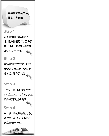 根據(jù)鐵道部發(fā)布的消息,從本月10日起,實名制車票丟失后可以掛失補辦,但須交2元手續(xù)費。