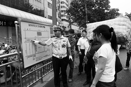 大河報訊 很多外地來鄭人員在火車站下車后經(jīng)常向民警問路,昨日,鄭州交巡警三大隊聯(lián)合市公交總公司在火車站南、北出站口分別設(shè)置一塊公交線路示意圖(如圖),方便乘客按照圖示選擇線路。