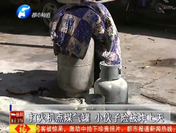 打火機點煤氣罐 小伙險被炸飛