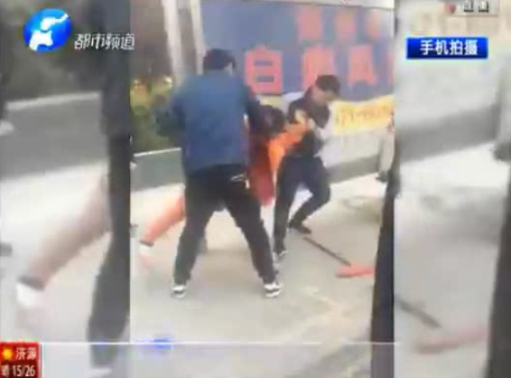 兩男子當街圍毆女環衛工 遭圍觀群眾暴打