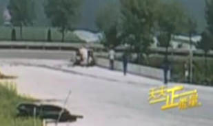 三輪突然側翻 市民抬車救人