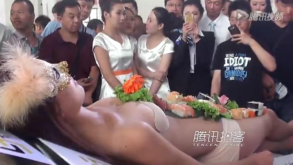 沈陽(yáng)車展現(xiàn)“女體盛壽司宴”現(xiàn)場(chǎng)試吃