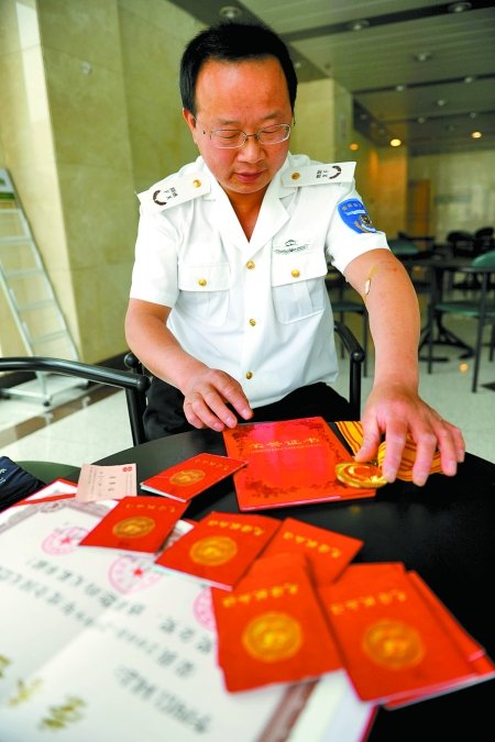 雖說他熱衷于為大河報提供新聞線索,但提起自己的獻血經歷卻不想多說。在記者的反復詢問下,李四信說,他于2002年1月開始第一次獻血。當時,他與朋友在二七廣場附近游玩時看到一輛采血車,出于好奇就去獻了400毫升全血,因為是好事,獻過后自己很開心。從那以后,自己對獻血便“上了癮”,剛開始按獻全血的規定,每隔半年獻一次,一次400毫升;后感覺獻全血隔的時間有點長,就開始獻成分血,一個月就可以獻一次。其間,他獲得過鄭州市紅十字會、中國紅十字會總會等多個部門頒發的獻血榮譽證書。