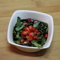 8. 香菜、醬油、糖、辣椒根據個人口味拌在一起就好,吃時蘸食。