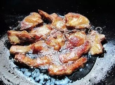 2、下入鍋中煎到兩面發(fā)黃,鍋中加入蔥姜蒜炒香。
