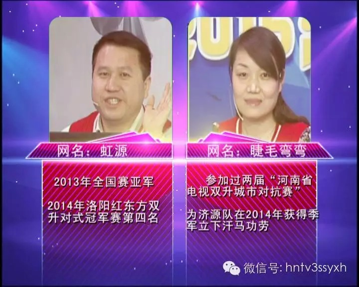 “睫毛彎彎”代表濟源參加兩屆城市對抗賽,為濟源隊在2014年獲得季軍立下汗馬功勞,“虹源”是濟源隊隊長,帶領濟源隊多次獲得優異成績,曾獲得2013年全國賽亞軍,2014年洛陽紅東方雙升對式冠軍賽第四名。