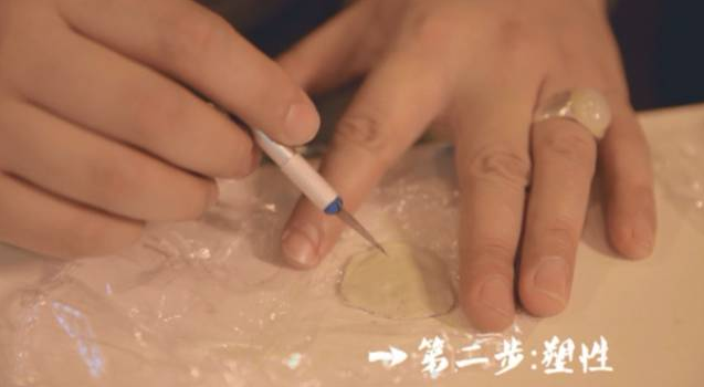 第一步需要先捏土,但全程不能用手直接觸碰,所有的銀質黏土一點也不能浪費,可謂是真正的寸土寸金。今天做的是豌豆的造型,需要有三個豌豆,豌豆的制作相對簡單,想做出大牌兒一般的手作,全靠你左腦的想象和右腦的操作了。