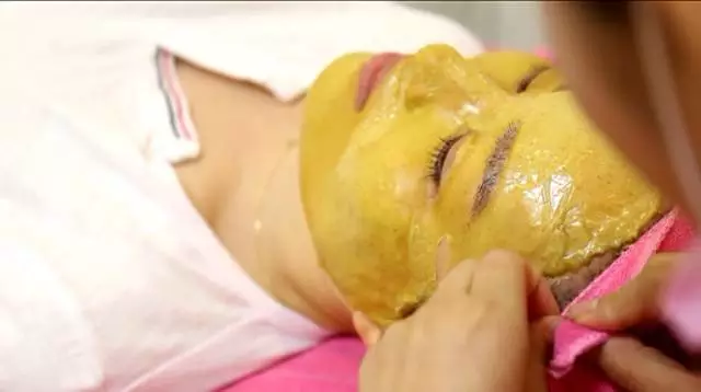 在涂抹面膜之前,工作人員會先用蜂蜜對顧客臉部進行按摩,蜂蜜的粘性可以防止皮膚水分蒸發,按摩也促進了臉部的血液循環,在按摩結束后,就可以涂抹面膜了。