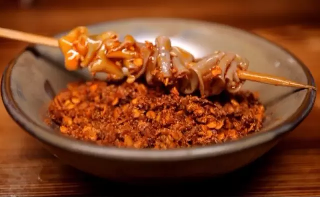 不可錯過的還有自制蝦滑,彈彈的蝦滑在蒜蓉辣醬中一蘸,入口就是獨有的甜辣味兒,還能吃到小顆粒的泡椒呢,有些吃貨不太喜歡甜口的,那就不妨來試試椒鹽干碟,串串在干碟里轉上一圈兒,分分鐘就征服挑剔的嘴巴。