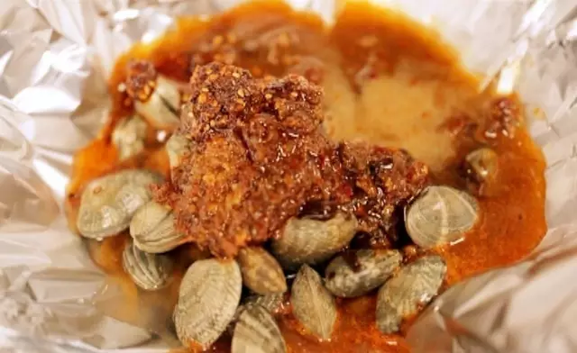 就像說相聲講究捧哏與逗哏,冷鍋串串的好搭檔就是錫紙花甲啦,用錫紙折成碗狀放入花甲和調味料,在電磁爐上煮上五分鐘再放點粉絲,那香味足以讓人興奮起來了。