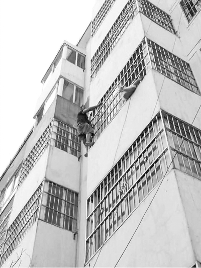 陳愛峰試著爬到防盜窗上營救女童 網友供圖