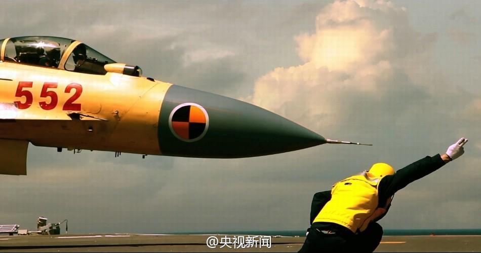 視頻全長將近6分鐘,畫面重點記錄了兩架編號為553和554的殲15戰機起飛、空中訓練及降落的影像。其中一架殲15戰機不是從滑躍甲板起飛,而是從水平甲板起飛。視頻還包括飛機降落時尾部鉤掛攔阻索減速的細部特寫。