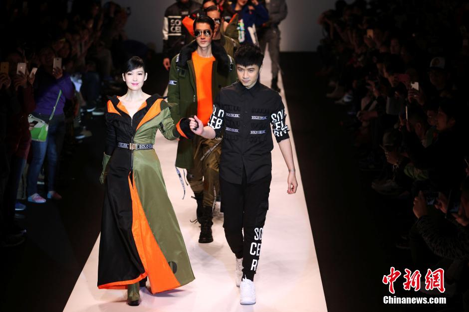 4月13日晚,變身設(shè)計師的古巨基個人第一場時裝發(fā)布會在上海時裝周舉行。為支持好友首秀,女神周慧敏特意飛到上海,親自登臺走秀,驚艷全場。圖為古巨基與周慧敏共同登臺。 張亨偉 攝