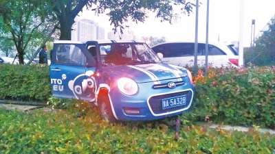 昨日上午10時許,大河報記者跟著鄭州市公安局交巡警支隊直屬六大隊民警,來到鄭東新區CBD如意湖畔的千璽廣場。事故發生地點位于千璽廣場西南側的一處廣場上,這里有一處共享汽車停車場。記者發現,這里共有6輛共享汽車,出事的豫A5A32B共享汽車是一輛藍白色搭配的力帆汽車,停在綠化帶內,車身有碰撞痕跡。停車場東北角,一輛白色豫A牌照奔馳轎車左前臉位置受損。