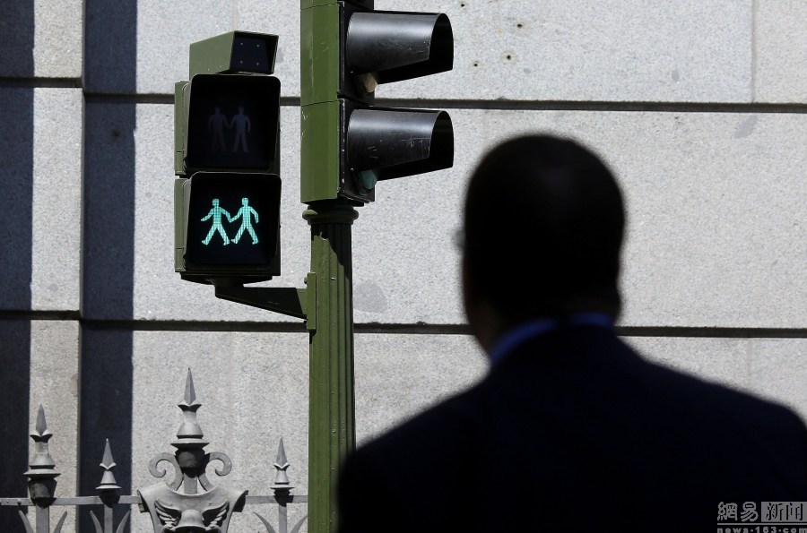2. 西班牙現同性戀紅綠燈 同性伴侶牽手過街
